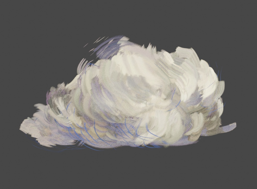 In the video I also make a copy of the basic Brush Material, so i can modify it later. Then finally I draw some brushstrokes! Try to emphasize the gesture of the volumes of the cloud while covering the surface.