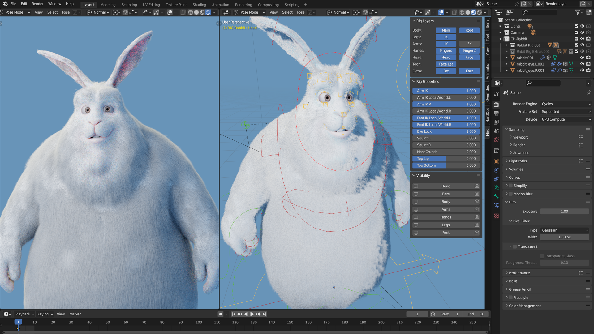 JC from Big Buck Bunny, also known as 'The Rabbit', or simply Bunny! His original rig by Nathan Vegdahl has been updated to work in Blender 2.7x by Wayne Dixon and Hjalti Hjalmarsson.