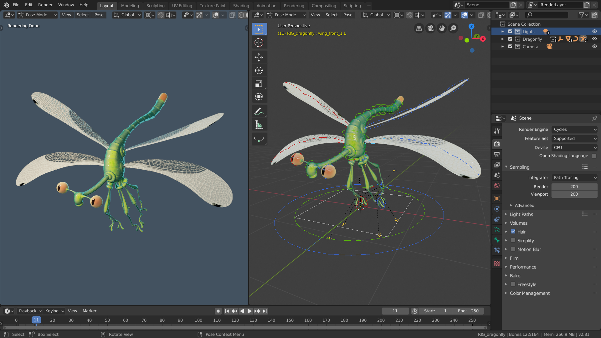 - In the list, select RIG-dragonfly. If the model is too heavy, enable Simplify in the Render Settings.