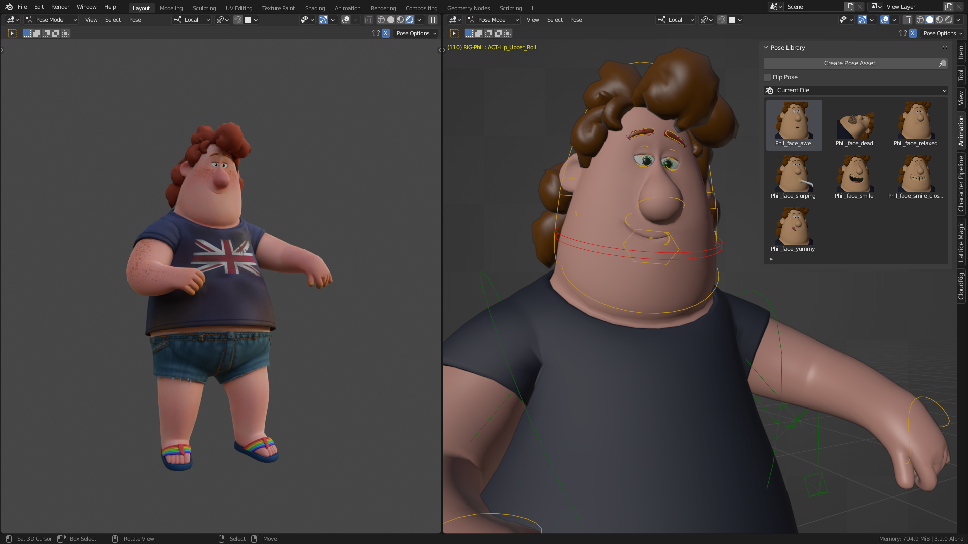 The party's support player, tank and carry all in one, Phil is here to haul gear, cook nourishment and fight at the front line, all in a day's work. Grab the full character rig and a small facial pose library.