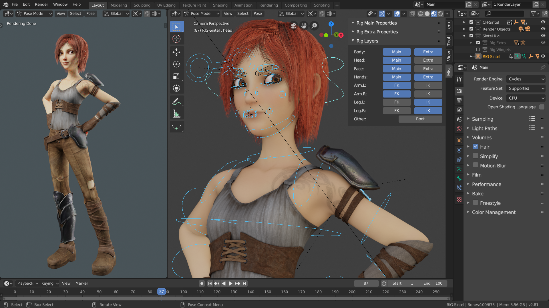 - In the list, select RIG-Sintel. If the model is too heavy, enable Simplify in the Render Settings.