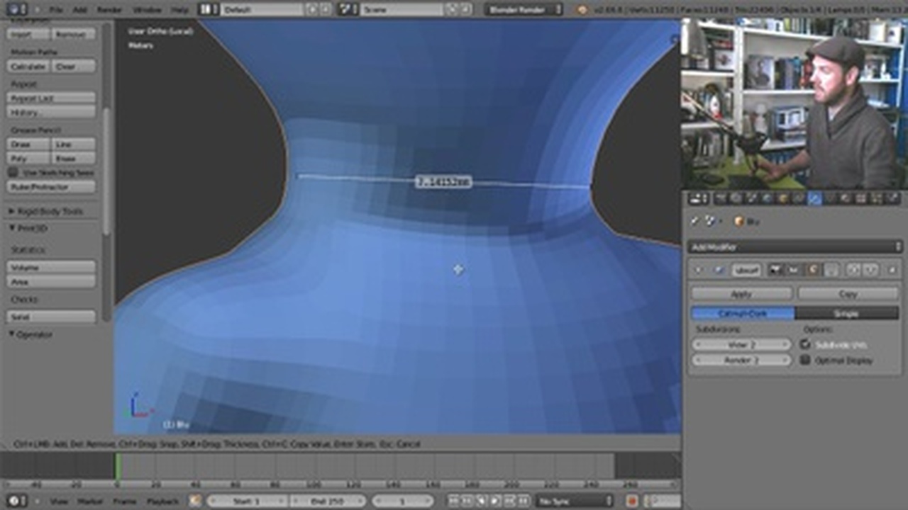 You can set up Blender to work in real-world units and measure them using the brand new Ruler. You can now also retrieve a model's volume and surface area.