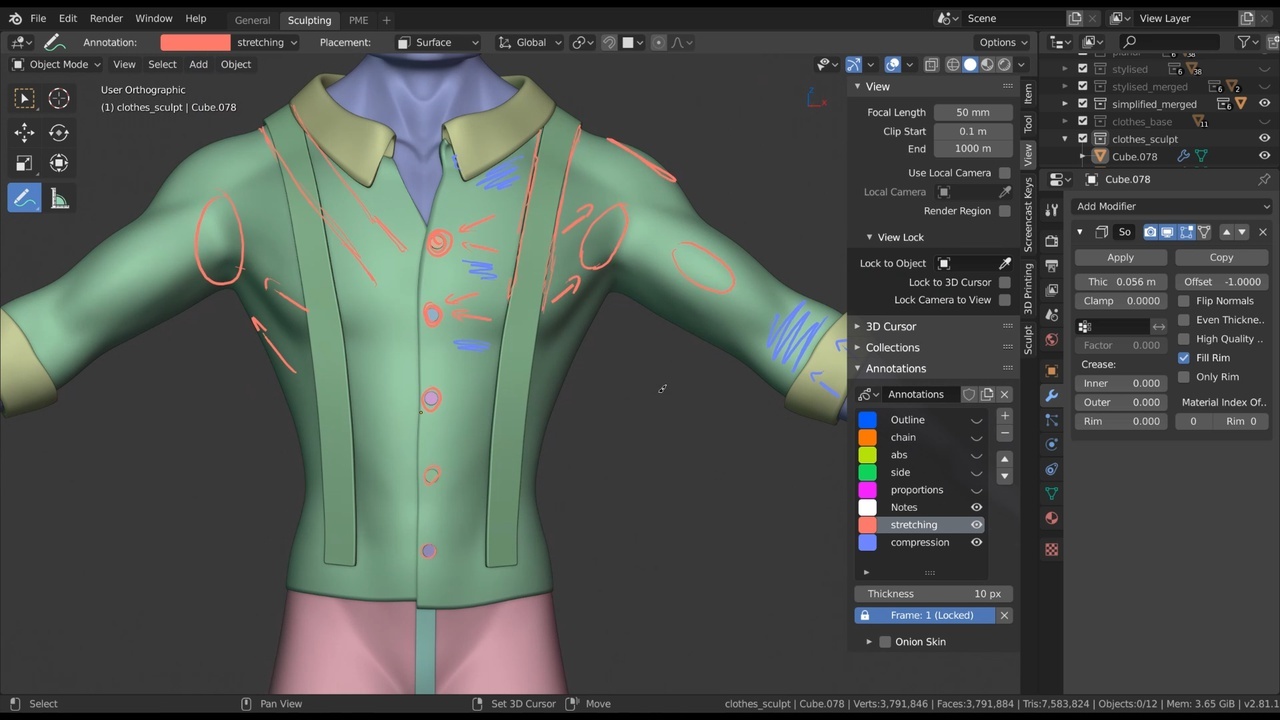 In this video I'll talk about how to determine where to sculpt the wrinkles & folds and why. You need to know a bit about the theory of stretching vs compression so that you cloth won't look random and unnatural.