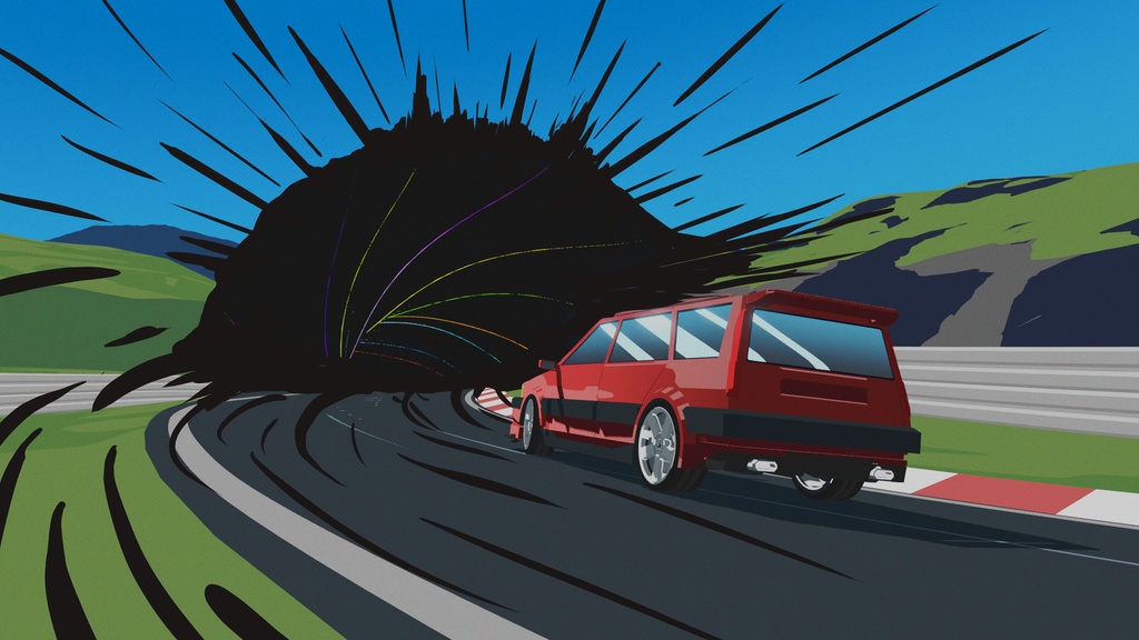 我熱愛並欣賞汽車設計和機械工程,這就是我選擇賽道上的汽車的原因。前段時間,我和一些朋友去了德國,開車在紐柏林賽道行駛。這讓我非常激動,它給了我一種自由的感覺,讓我可以投入這個動畫短片專案。這也是為什麼賽道的靈感來自紐柏林賽道,它可能是最著名的職業和業餘賽車賽道。