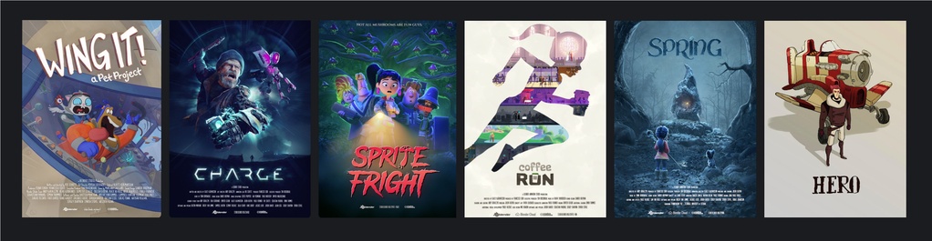 對於Blender Studio發行的每個主要電影項目,在電影發行之前創建和設計了電影海報。這通常發生在生產結束時,當一些團隊成員完成任務並有空閒時間來設計海報時。海報設計的時機通常與生產的結束相吻合,因為到那時,電影的資產,著色和最終外觀已經完成,並且可以將其納入海報中。
