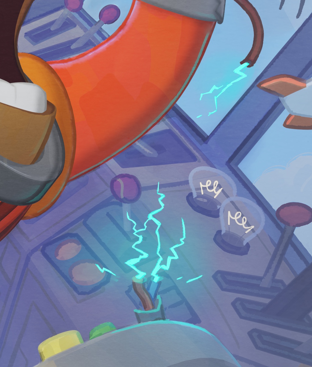 海報需要將火箭座艙的內部以及其中的兩個(或三個)角色以及其中的兩個字符配備。之所以選擇火箭的內部,是因為它是貓與狗之間衝突的核心,並且還展示了團隊對細節的巨大努力和關注。內部在美學上和技術上都脫穎而出,使其成為海報的強大選擇。以模塊化的方式建造,以匹配電影的異想天開,卡通風格,非常適合此目的。