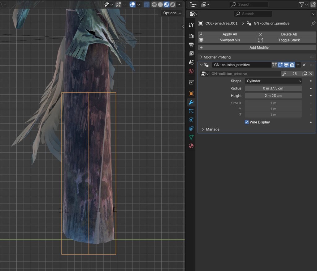 此時,我們可能會在收到回饋後對資源進行迭代。遺憾的是,幾何節點實例中鬆樹的枝條散落在松樹底部,未能正常運作。這個問題後來得到了解決,但同時,我們使用了集合實例來規避這個問題。這並非什麼大問題,因為松樹和大多數資源一樣,需要更注重藝術指導。觸感。