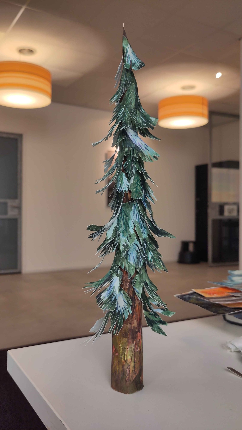 最初,我嘗試使用可平舖的松木切面紋理,並自行切割松木切面形狀,但最終效果平淡無奇。掃描的零件不僅是手繪的,而且還帶有一些漂亮的瑕疵,例如紙張撕裂產生的白邊。這使得手工紙藝作品的效果更加出色!