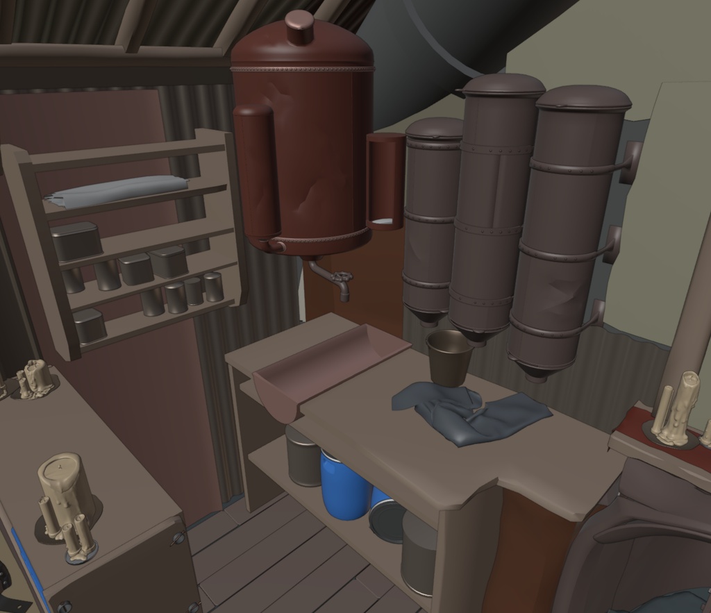 敘事細節是房間的不同區域,如艾納的工作台、廚房、壁爐、入口和睡眠區,這些區域擁有更多獨特的資產。這些區域是房間的重中之重,通常也是細節最多的地方。