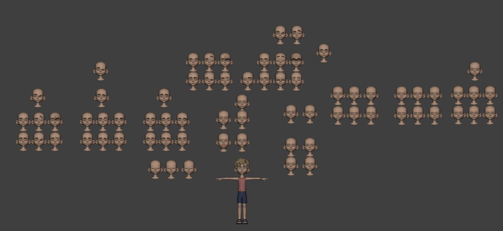 為了確保變形保持吸引力並符合角色設計,我們根據特定姿勢創建了校正形狀關鍵點。為此,我們使用了姿勢空間變形 (PSD) 技術和姿勢形狀關鍵插件(可在 Blender 的擴展平台上使用)。