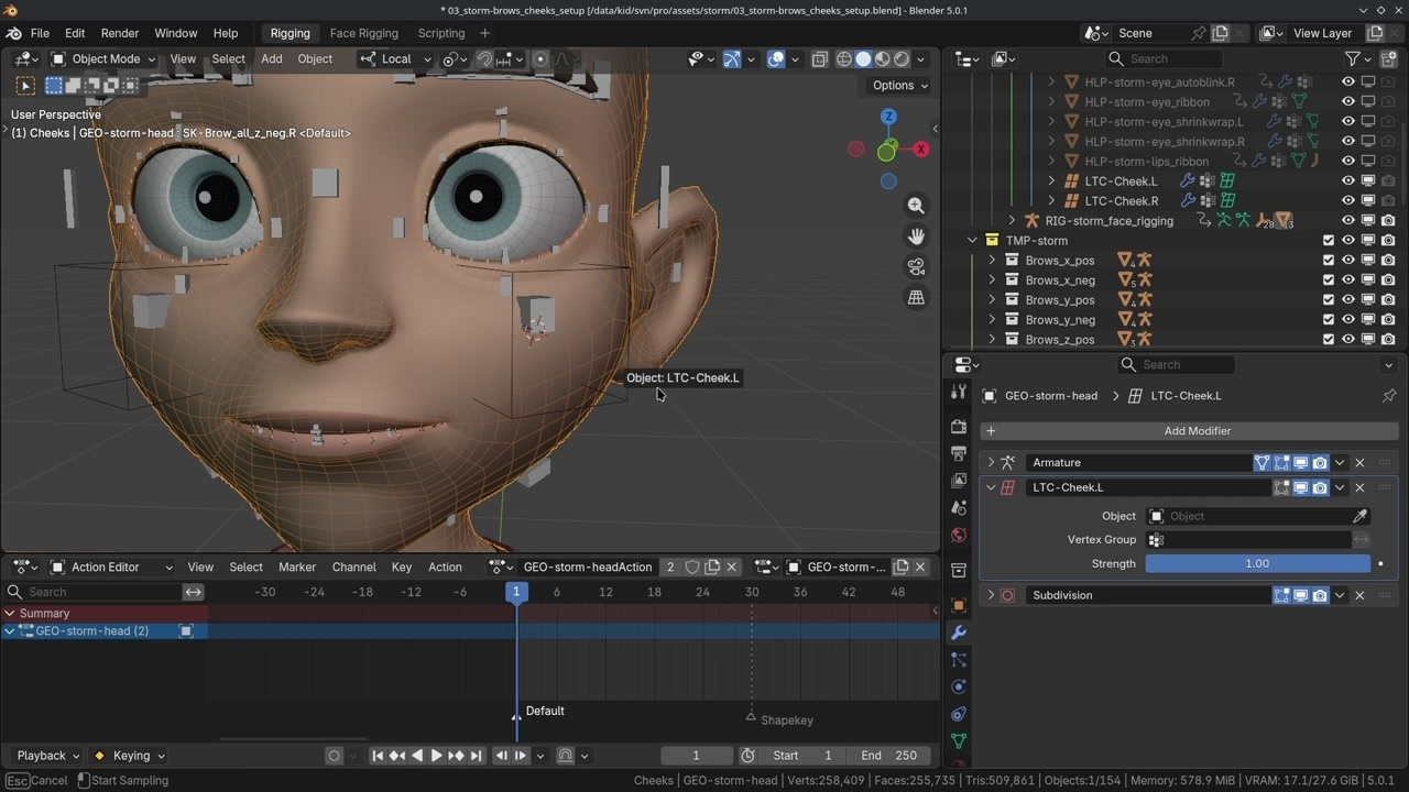 除了使用形變鍵來改變臉頰形狀之外,我們還希望賦予動畫師更大的靈活性。因此,我們添加了一個晶格變形器,它只驅動旋轉和縮放變換通道。這樣,我們既可以使用形變鍵作為主要的變形器,又可以將其與晶格變形器提供的額外變形結合。可謂兩全其美。